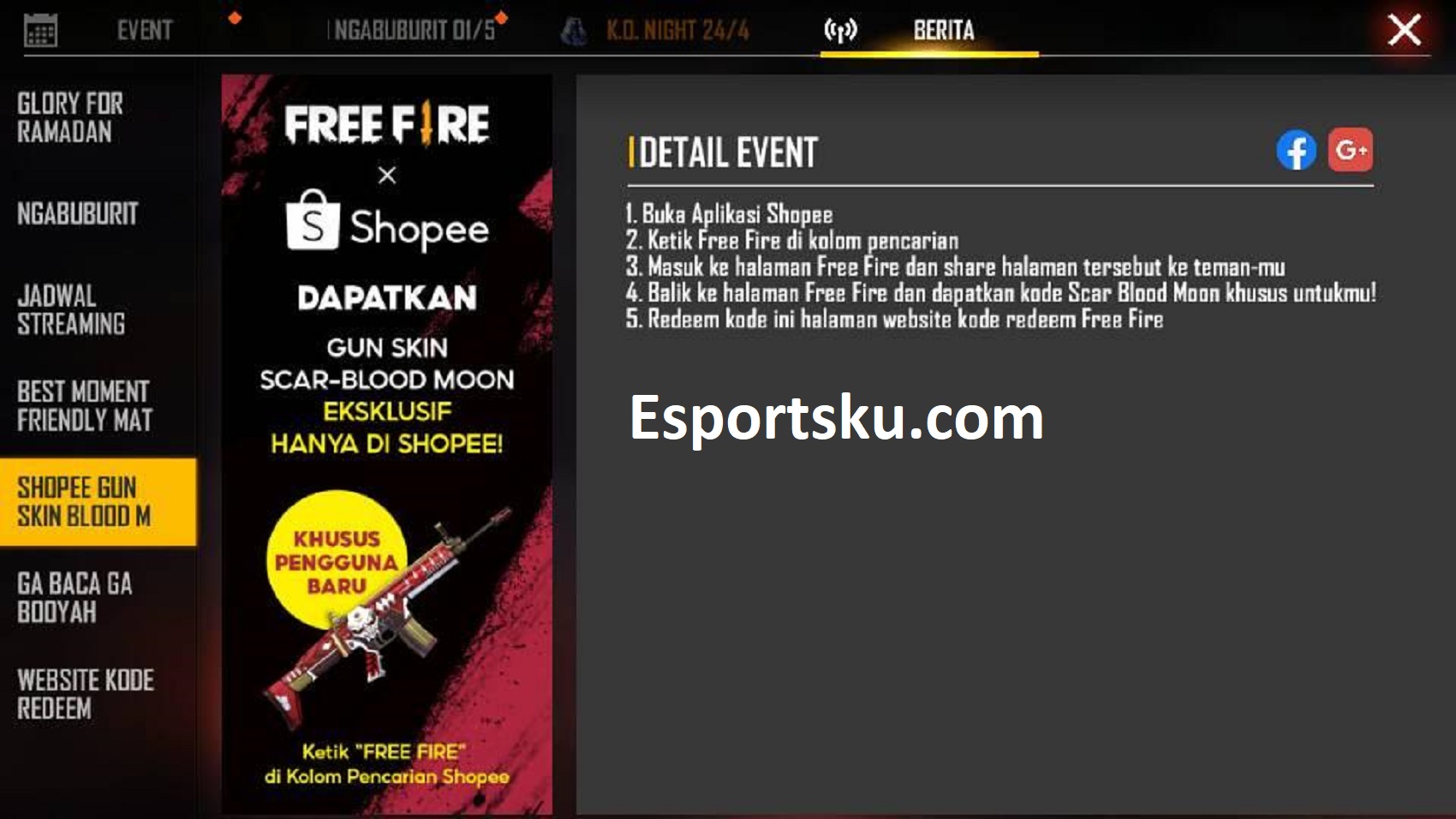 Cara Mendapatkan Gun Skin Scar Blood Moon Free Fire X Shopee Esportsku